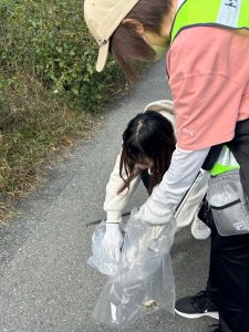 危険個所がないかなど目視点検を行うと同時に、経路上のごみ拾いなど道路清掃活動を